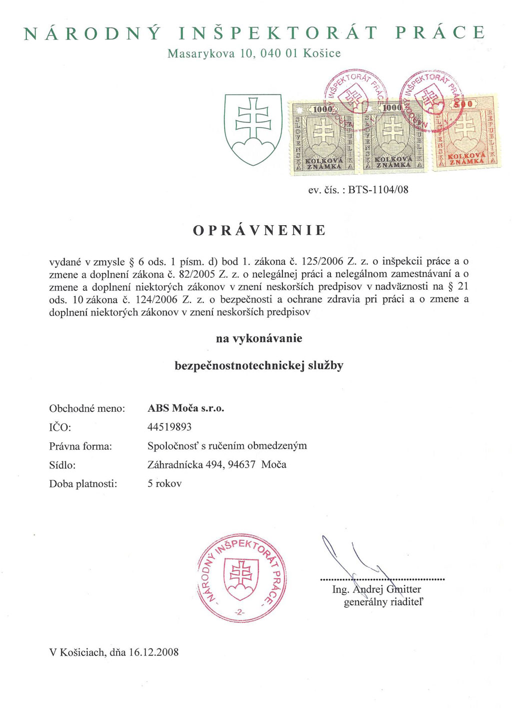 - vykonávanie bezpečnostnotechnickej služby (viď webstánku NIP)